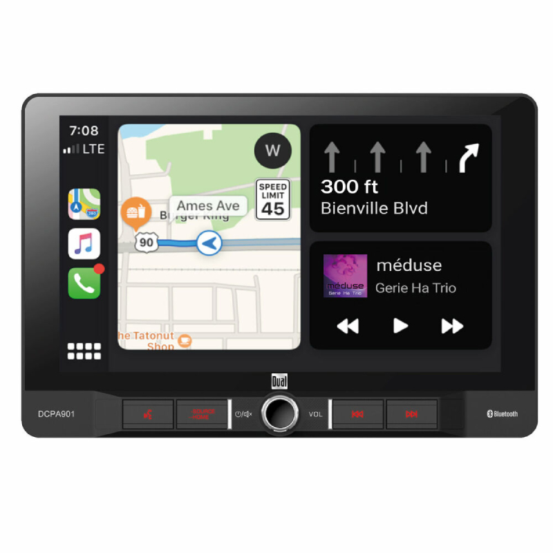 Dual DCPA901 1-DIN 9" Extra Large Capacitive Touchscreen, Apple CarPlay & Android Auto, Digital Media Receiver