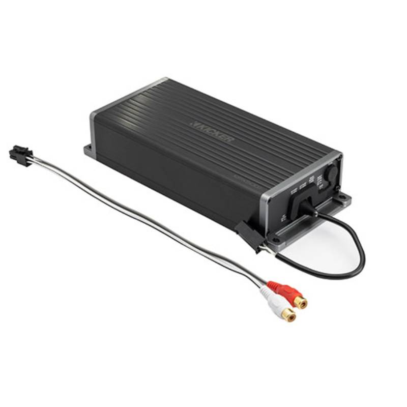 Designed for harsh powersports environments, this amplifier features a weather-resistant construction for reliable performance. Built-in 24 dB/octave variable low-pass crossover and subsonic filter protect your subwoofer while enabling precise tuning, and the selectable KickEQ™ Bass Boost (0–6 dB at 40 Hz) delivers extra punch for a deeper, more impactful low-end.