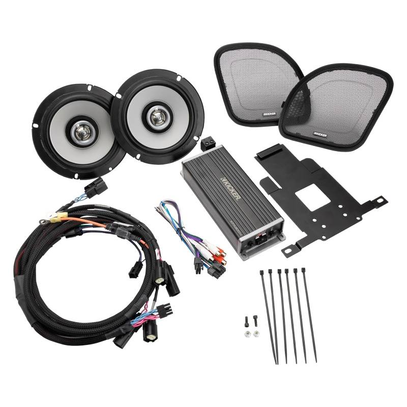 Kicker 50HDR154 6.5” 4-channel Front Speaker/Amplifier Kit for 2015 & Up Harley Davidson Road Glide with Grilles “Shark-Nose”