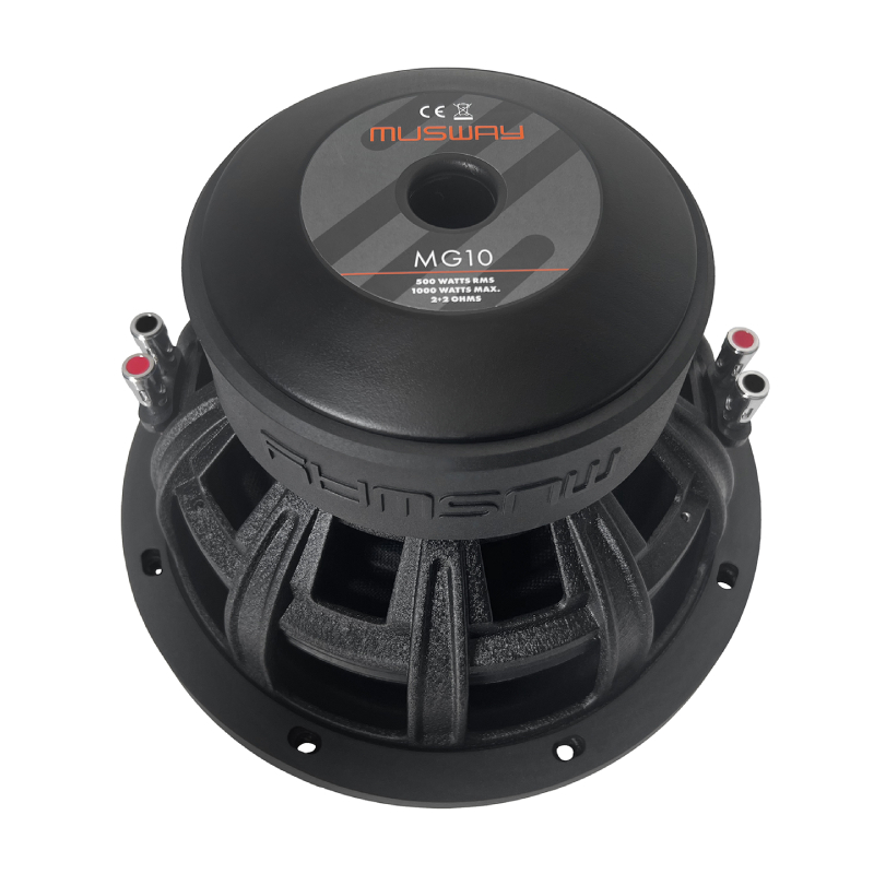 Delivering deep, clean performance down to 43 Hz (-3 dB) in a compact 25-liter enclosure, the MG10 sets a new standard for precision and clarity. Its elegant design features a sturdy protection grille for style and safety, while the premium aluminum cast basket with sleek struts and large ventilation windows ensures durability and superior airflow.