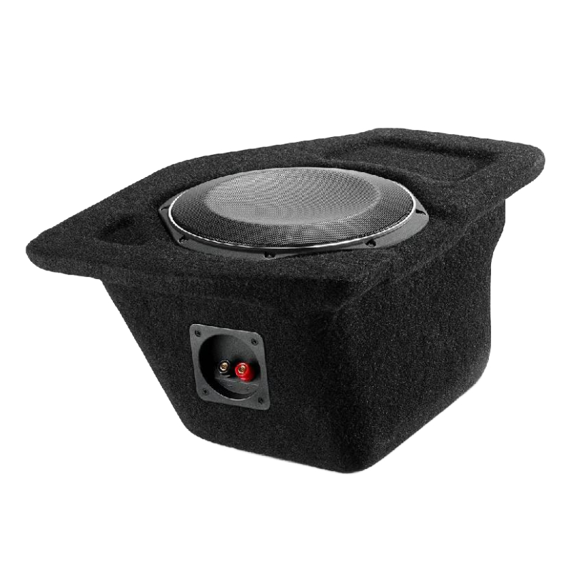 Ford's mid-sized pickup promises practical utility and performance for everyday commutes or rugged terrains. To make every drive even more enjoyable, our Stealthbox® solution tucks under the rear seat on the passenger side and encloses a 10-inch driver for impressive sub-bass performance. Seat folding is unaffected with plenty of room remaining on the driver side for storage. Best of all, the Stealthbox® virtually disappears once installed. The Hard Data: Contains one 10TW1-2 subwoofer in a sealed enclosure. 300 watt power handling. Wired for 2 ohm mono. Installs under passenger side rear seat in place of storage compartment. Will not fit SuperCab.