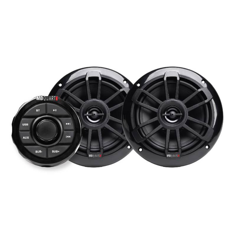 MB Quart GMR1.5S2B - GMR Series 6.5 " 160 W Each, 2-way Marine Coaxial Speakers with Bluetooth Source Unit (Black), Set of 2 Speakers, Marine Grade Waterproof for Marine, Car, RV