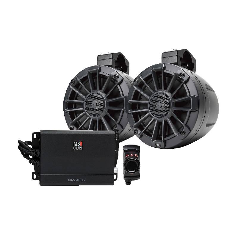 MB Quart UNI6.1BTA - UTV Tuned 2-Speaker 400 Watt Audio System with Joystick Controller Bluetooth Source Unit, Including 6.5" Rear Speakers with Roll Cage Mounted Enclosures, Powered by a 2-Channel Amplifier
