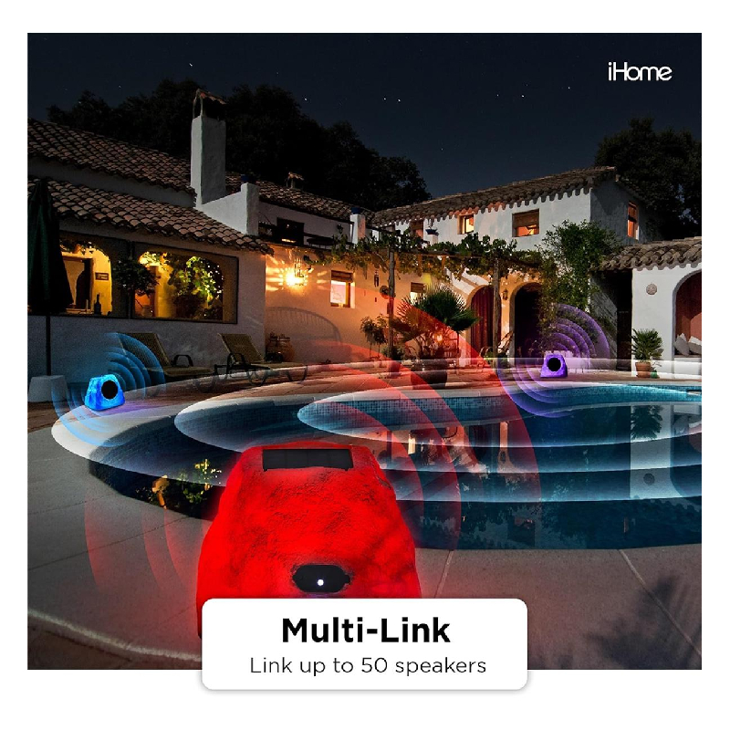 Gemini Sound GHRK-500LTMS-PR -Twin 5" 60W Peak Power Handling, 4-Ohms Portable Solar-Powered Buletooth Rock Speaker with Multi-Link, Weather-Resistant Design For Outdoor Entertainment, Wireless Connectivity, and Ambient Led Lighting