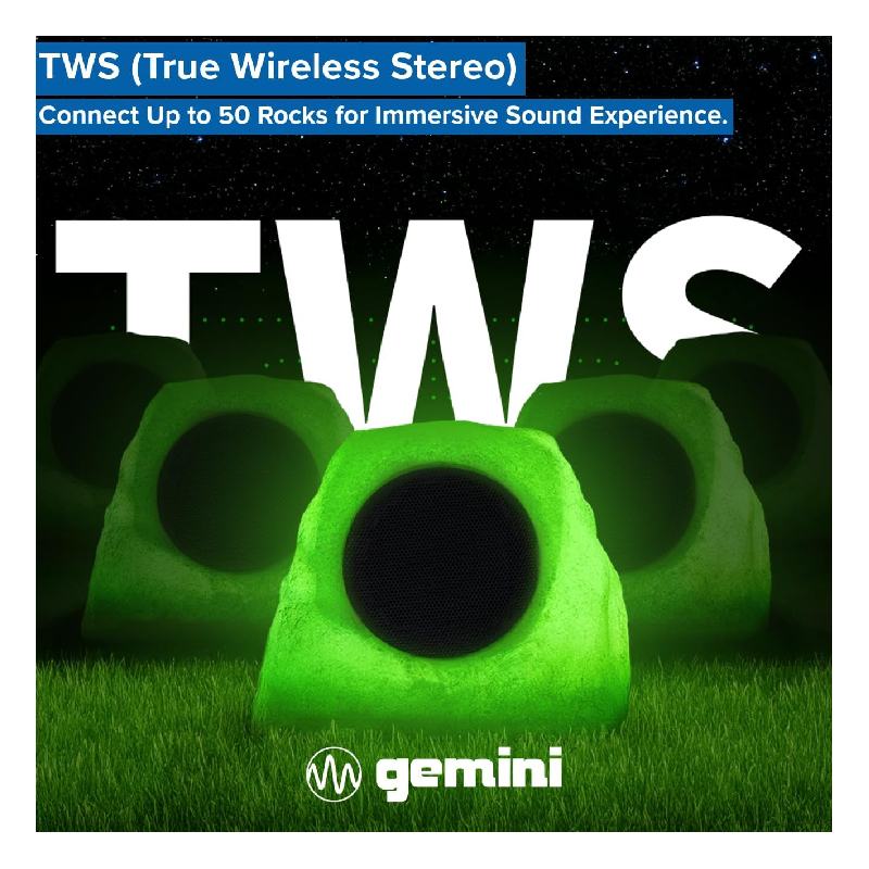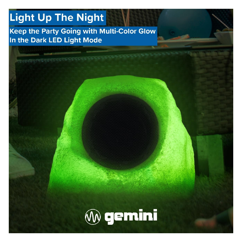 Gemini Sound Twin 5" 60W Peak Power Handling, 4-Ohms Portable Solar-Powered Buletooth Rock Speaker with Multi-Link, Weather-Resistant Design For Outdoor Entertainment, Wireless Connectivity, and Ambient Led Lighting