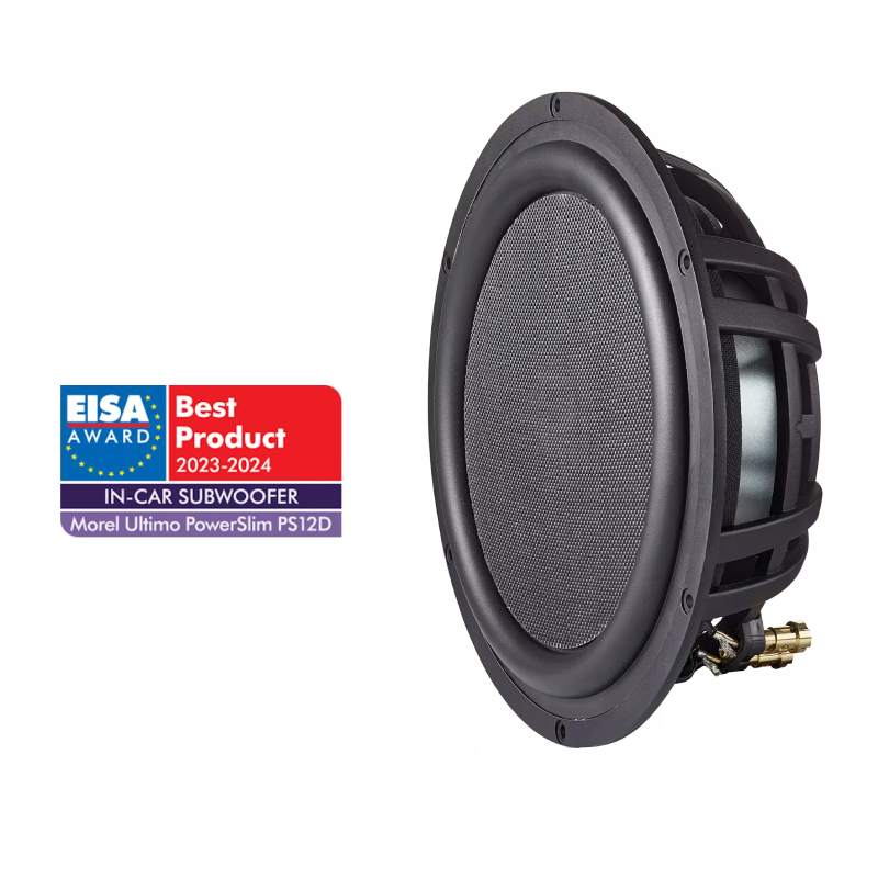 Morel's Ultimo PowerSlim subwoofers stand out for their superior sound, power handling, and construction, earning them recognition as the Best In-Car Subwoofer of 2023-24 by the European Imaging & Sound Association (EISA), showcasing Morel's commitment to top-notch audio quality. Crafted with precision, the PS104D Ultimo PowerSlim subwoofers boast a robust die-cast aluminum chassis, ensuring unwavering support for unparalleled audio performance.