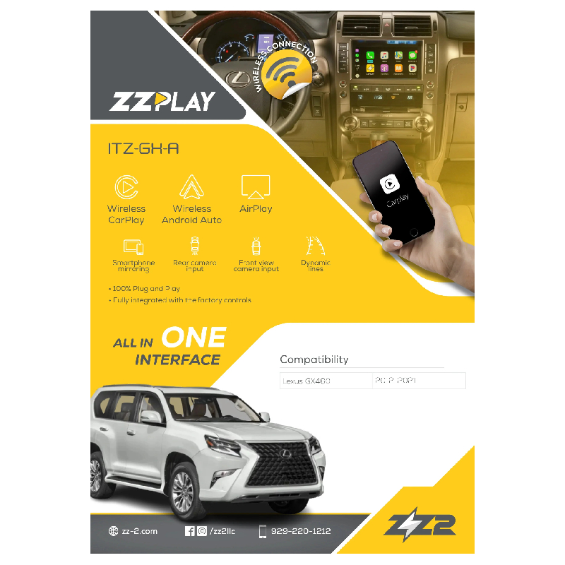 Experience the next level of connectivity with our state-of-the-art 2-DIN Digital Multimedia Receiver, meticulously designed to seamlessly integrate Wireless CarPlay, Wireless Android Auto, front and rear camera support, a mirror interface, and USB AV input into your Lexus GX460 (2014-2021). Enjoy the convenience of wireless integration with Apple iPhones and Android smartphones, accessing navigation, calls, messages, and various apps without the hassle of cables. Enhance safety on the road with front and rear camera support, automatic switching between camera views, and dynamic parking guidelines, ensuring optimal visibility during driving and parking maneuvers. With a responsive touchscreen interface, high-resolution display, and compatibility tailored specifically for Lexus GX460 models, this multimedia receiver promises to elevate your driving experience to new heights.