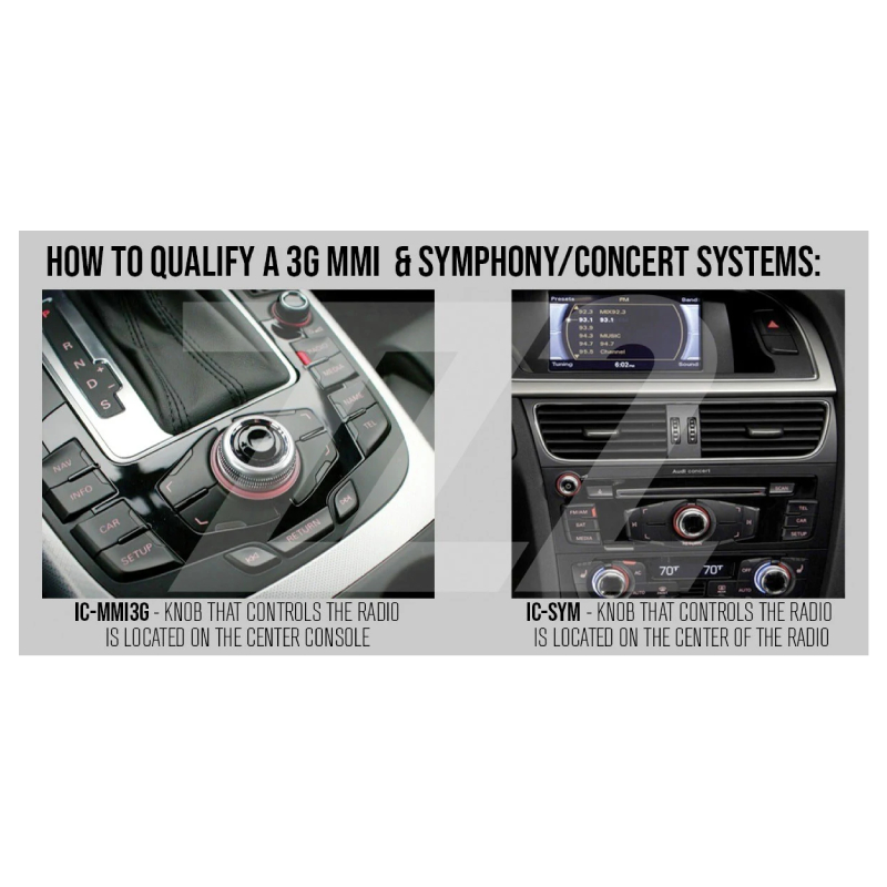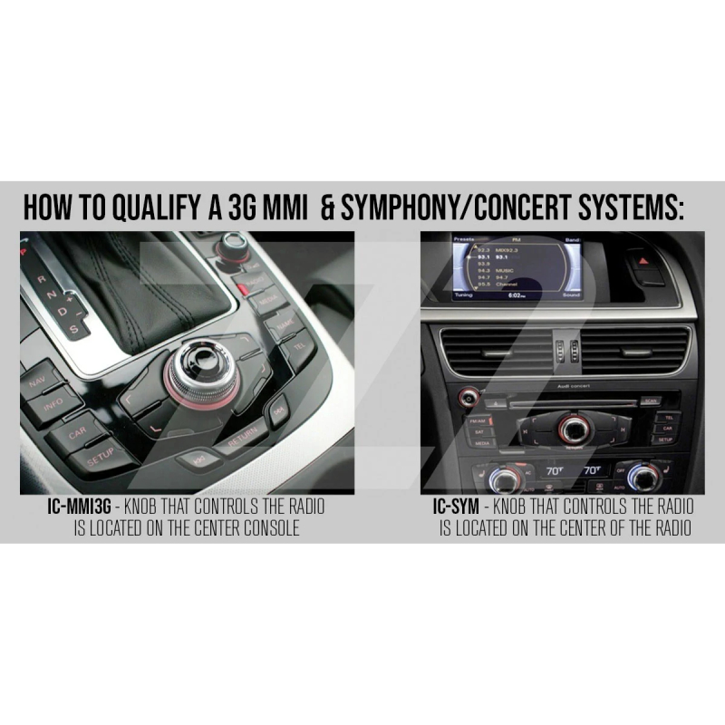 Designed for compatibility with select Audi models equipped with Concert/Symphony radio systems, the IC-SYM Camera Interface offers effortless integration and seamless operation within your vehicle's existing setup. With dual video inputs, you have the flexibility to connect both front and rear view cameras simultaneously, enhancing your driving experience with enhanced visibility and situational awareness. The interface's advanced switching functionality ensures smooth transitions between rear and front view camera inputs, providing you with real-time visual feedback for confident maneuvering in any driving scenario. Whether navigating tight parking spaces or crowded urban streets, this interface delivers unparalleled convenience and peace of mind on the road.