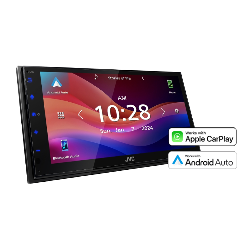 JVC KW-M590BT 1-DIN 6.8" Touchscreen Digital Multimedia Receiver with Wired Apple CarPlay® & Android Auto™, USB Mirroring, and Built-In Bluetooth (Does not play discs)