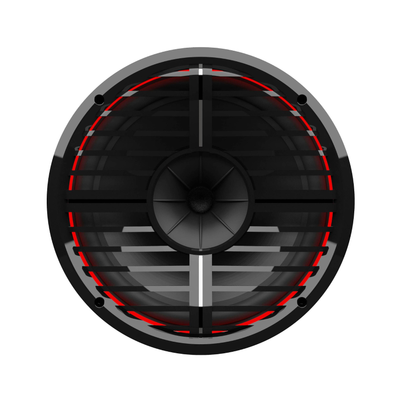 Built for durability in any marine environment, this speaker features a rugged thermoformed Santoprene™ rubber surround, while the injection-molded reinforced enclosure offers maximum strength. With integrated RGB lighting on both the front and rear, you can enjoy stylish illumination for evening adventures on water or trails. Plus, customizable grille styles and mounting options in sleek white or black allow you to personalize your setup for a truly standout look.