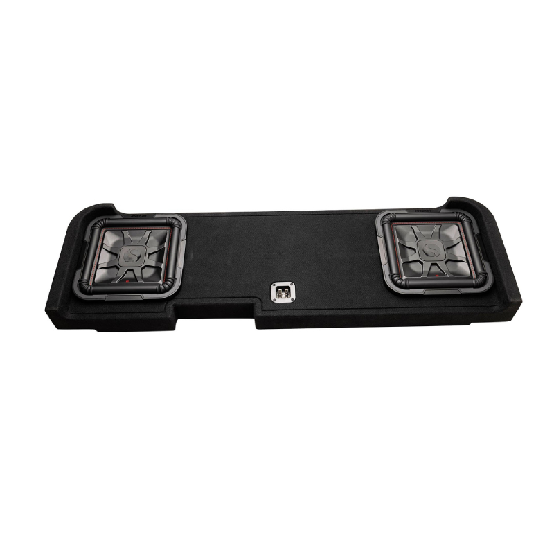 Crafted from robust MDF and meticulously contoured to match every curve of your Silverado or Sierra, this custom enclosure is tailored for optimum bass performance. Housing a pair of down-firing L7T 12-inch subwoofers, this setup unleashes a staggering 1,200 watts of recommended power, ensuring a thunderous audio experience. Delve into the details below to uncover the sheer power and precision engineered into this premium bass solution.