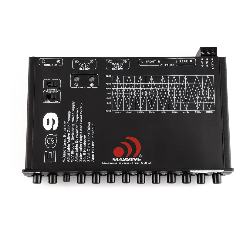 Massive Audio EQ9X 9 Band Car Audio Graphic Equalizer with Gold Plated RCA Connectors