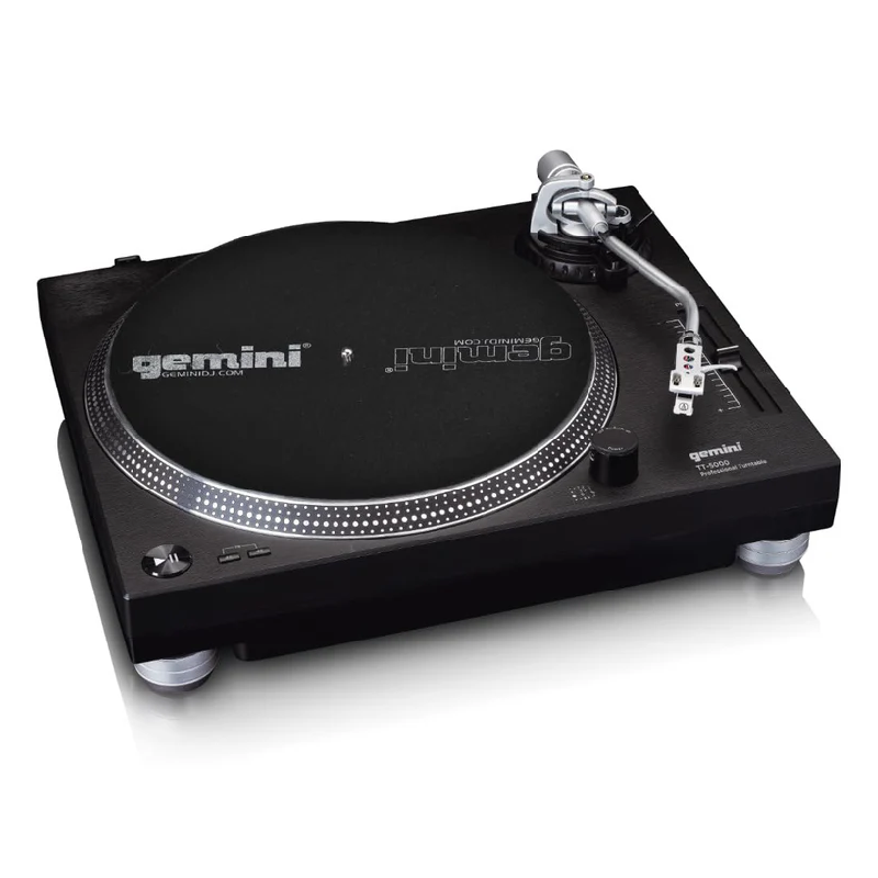 Experience premium sound and modern design with the Gemini Sound TT-5000, featuring high-torque performance, adjustable height, pitch control, and a built-in audio interface. Complete with a headshell, cartridge, stylus, RCA and power cables, and Audacity software, this sleek black turntable is crafted from durable metal and designed for seamless connectivity with your PC—delivering ultimate precision and versatility for music enthusiasts.