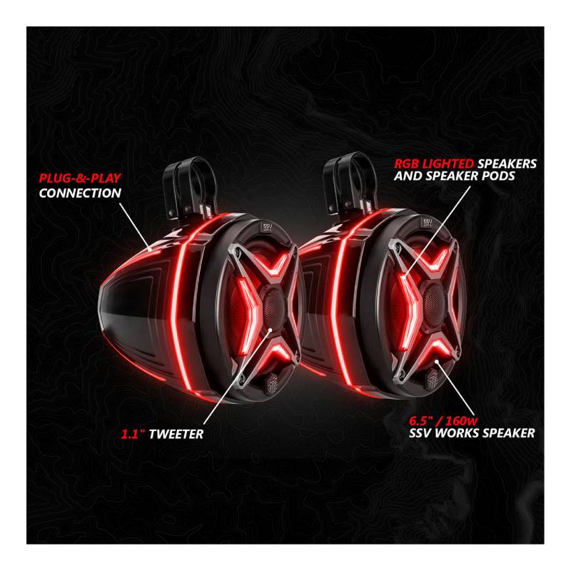 • Speakers: SSV V-Spec, 160W Powersports Speaker