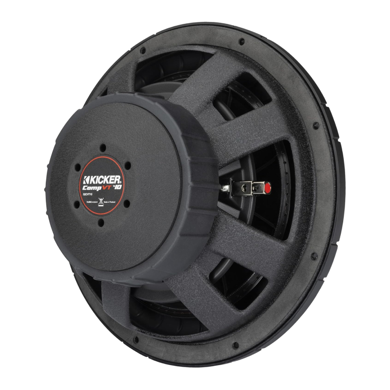 Enjoy powerful, distortion-free bass with KICKER forced air cooling, a slim mount design, and a heavy-duty steel basket that reduces vibration. The high-temperature voice coil and injection-molded cone ensure clear, enhanced performance.
