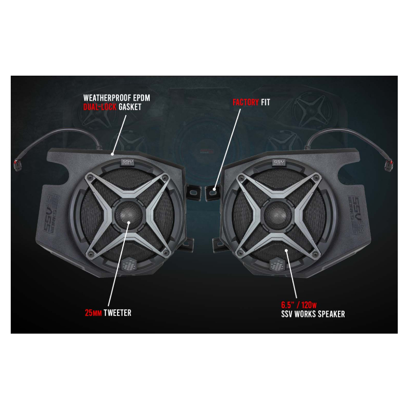 SSV Works RZ4-F65V Front-Kick Panel Pods with V-Spec RGB 6.5" 120W RMS (240W Peak Power Handling) 4 Ohms Speakers for 2014-2023 Polaris RZR