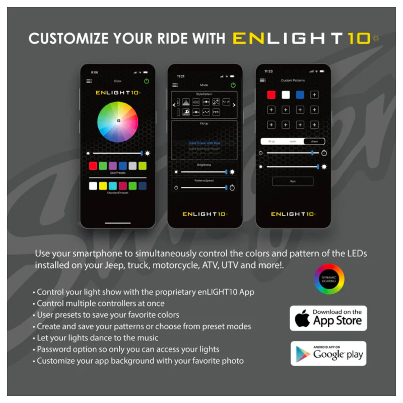 Make your vehicle stand out with endless lighting possibilities. The SE-SXMHAR harness lets you customize your SPXD lights to match the exact color of your HEIGH10 illumination. Want more? Link your lights together or set them to turn on automatically when your headlights do. With the Stinger enLIGHT10 app or your HEIGH10, you’re in charge of creating the perfect lighting experience wherever you go.