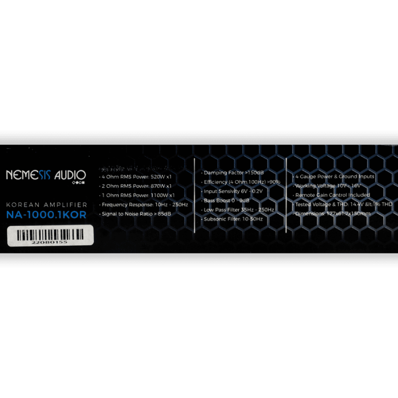 Nemesis Audio NA-1000.1KOR Korean Series 1000W RMS x 1 at 1 Ohm, Class-D Mono Subwoofer Car Amplifier with Remote Gain Control Included- Made In Korea