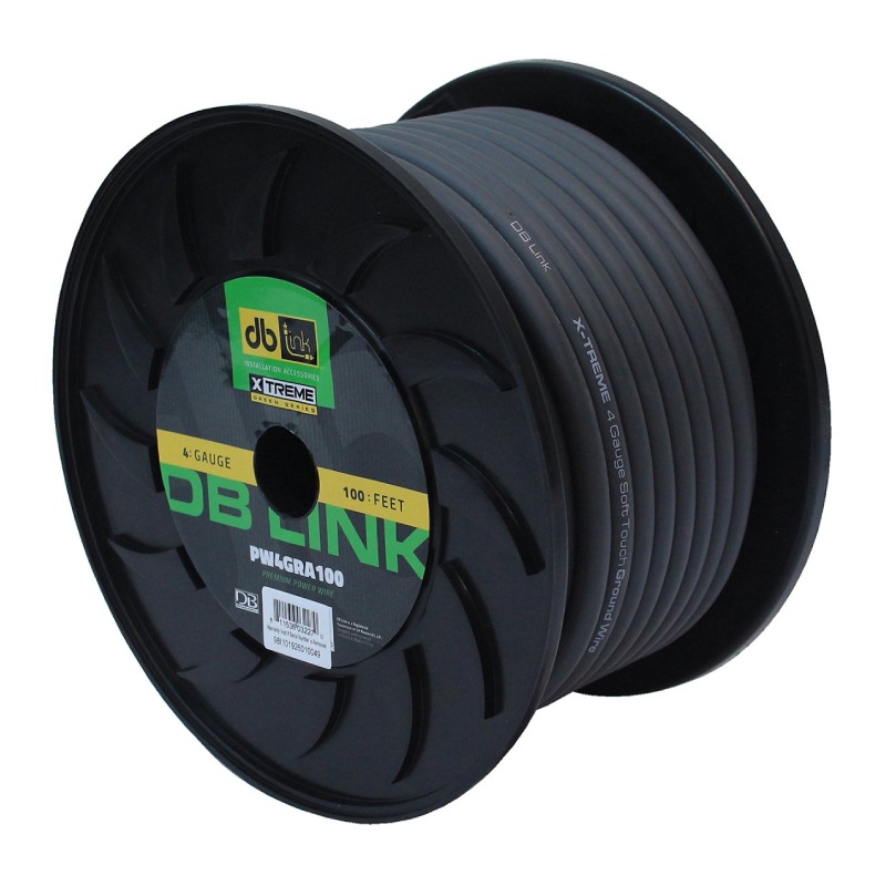 The DB Link PW4GRA100 X-Treme Green Series 4GA Power/Ground Wire offers the performance and flexibility needed for clean, efficient car audio setups. This 100 ft spool features a soft-touch jacket that makes routing easy, even in tight or curved spaces. Its copper-clad aluminum (CCA) core ensures solid conductivity for both power and ground applications, providing dependable performance for amplifiers and high-demand components. The gray outer layer adds a sleek, professional look while offering resistance to heat, chemicals, and abrasion.