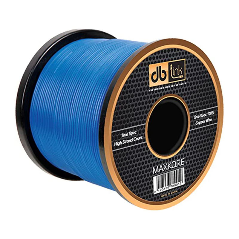 The DB Link MKRW18BL500 Maxkore is an 18-gauge remote power wire made from 100% oxygen-free copper for superior conductivity. Its high strand count ensures flexibility and durability, making installation smooth and secure. With 500 feet of vibrant blue cable, this wire delivers consistent power for your car audio or electrical projects, providing dependable performance every time.