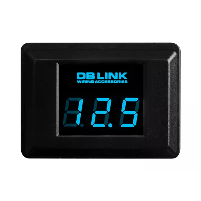 The DB Link DM12BL features a bright blue LED display that shows precise real-time voltage readings to one decimal place (e.g., 12.5V). Its compact rectangular housing fits easily on your dash or panel, providing clear visibility even in low-light conditions. Designed for easy installation and reliable performance, this digital voltage display is a dependable addition to any car audio or electrical system from DB Link.