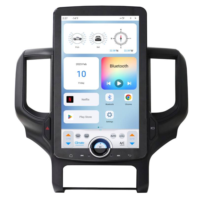 15.6" HD Touchscreen Android T-Style XL Radio for 2019-2024 Dodge Ram with Built-In Bluetooth, Wifi Ready, and Wireless Apple Carplay & Wired/Wireless Android Auto