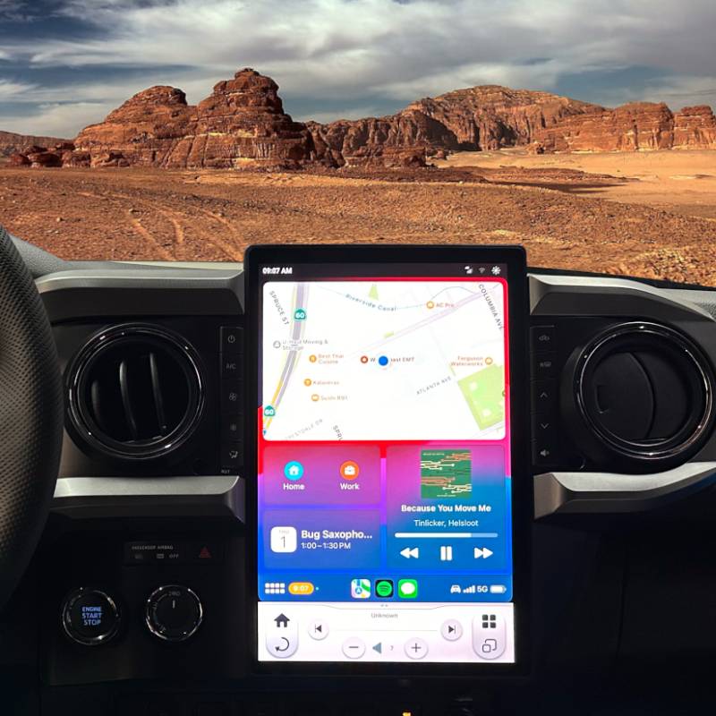 Transform your Toyota Tacoma’s dash with a stunning 13″ 2K HD touchscreen radio/tablet powered by an ultra-fast Qualcomm 8-core processor and 8GB RAM. Enjoy seamless wireless Apple CarPlay, Android Auto, multiple camera inputs, and full control of your vehicle’s climate, audio, and factory JBL system—all from one sleek display. Stay connected anywhere with built-in WiFi, 5G support, and an optional SIM card slot for nonstop streaming, navigation, and apps on the go.