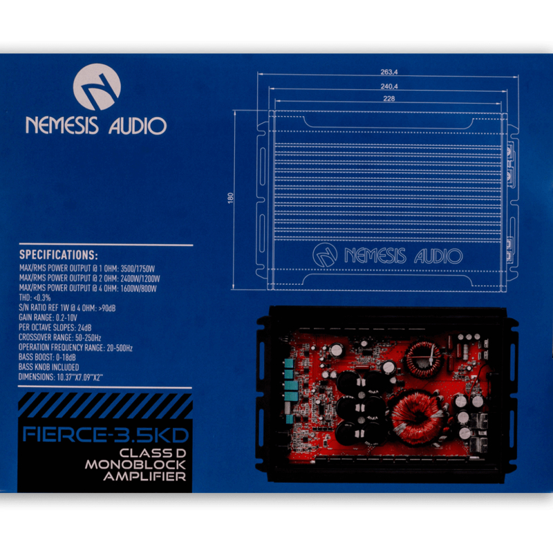 Nemesis Audio FIERCE-3.5KD Fierce Series 1750W RMS x 1 at 1 Ohm, Class-D Mono Subwoofer Car Amplifier with Bass Knob Included