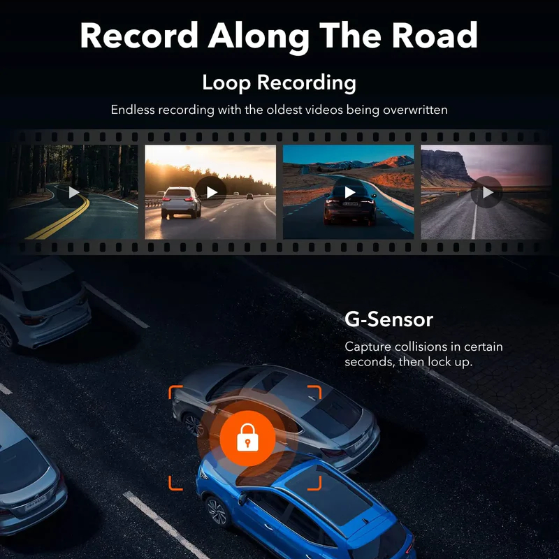 • Loop Recording & G-Sensor: Continuous recording with automatic collision-triggered video lock for reliable evidence.