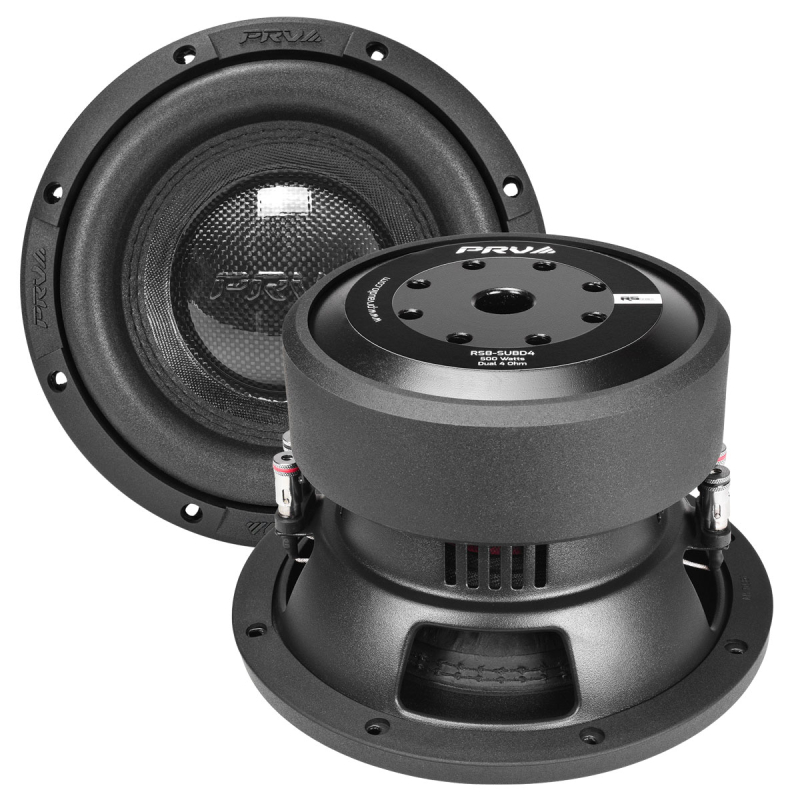 PRV Audio RS8-SUBD4 Series 8" 500W RMS (1000W Peak Power Handling) 4 Ohm, Dual Voice Coil Stamped Steel Car Subwoofer