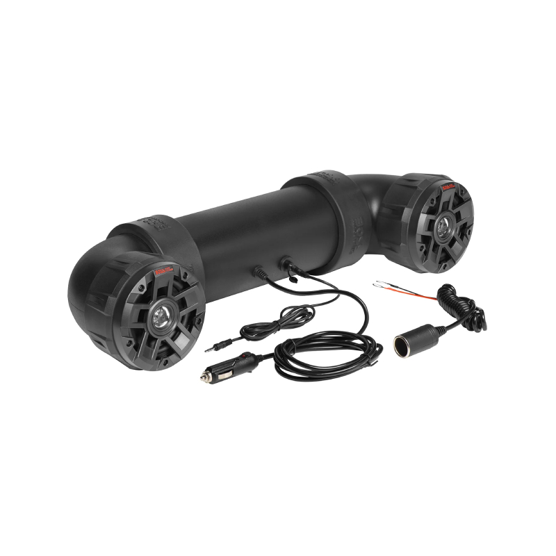 Built to handle the elements, this IPX5-rated system features a fully marinized enclosure that protects against water and dust for reliable outdoor or off-road performance. The built-in Class A/B amplifier powers the 4″ speakers and 1″ tweeters for clean, dynamic audio, while Bluetooth streaming lets you play and control your favorite music apps like Spotify or Pandora directly from your smartphone.