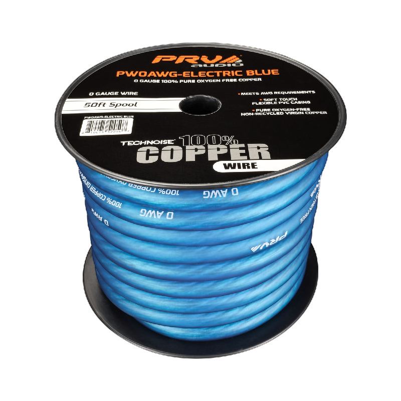 1/0 Gauge Electric Blue 100% Pure Oxygen Copper 50ft Roll Power Wire