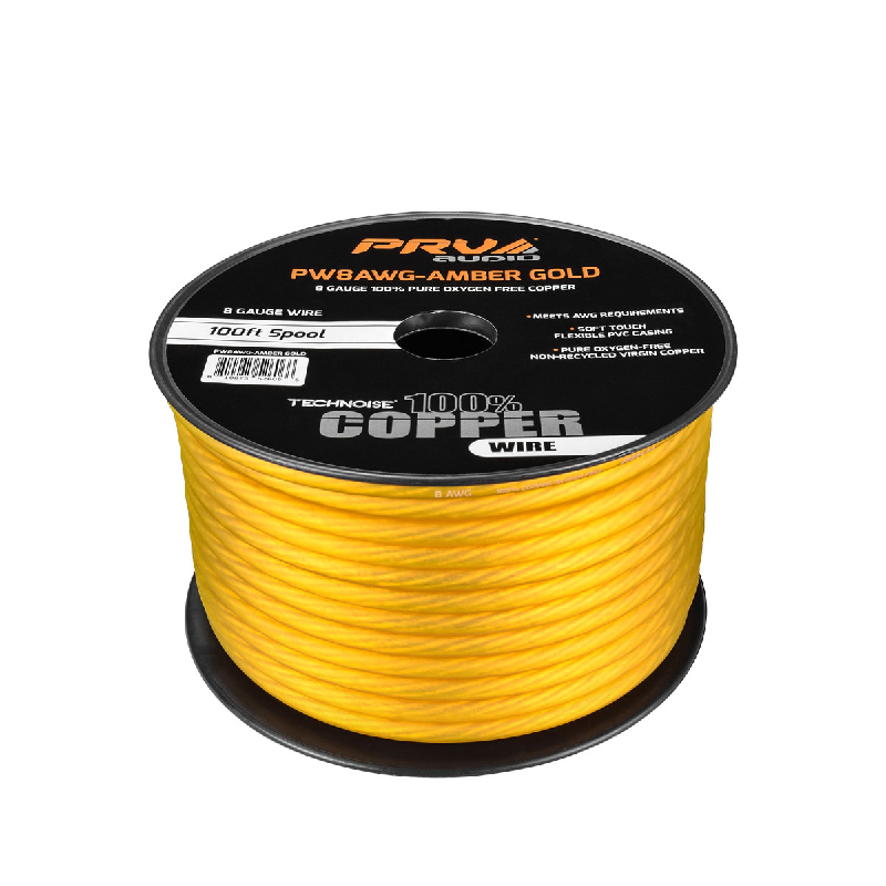 PRV Audio PW8AWG 8 Gauge Amber Gold 100% Pure Oxygen Free Copper 100ft Roll Power Wire