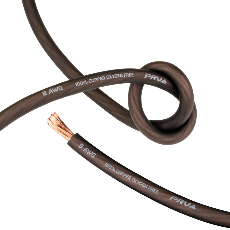 Constructed from 100% pure oxygen-free copper for superior current transfer and reliable amplifier power delivery, this true 8 AWG power wire meets precise AWG standards for accurate sizing and maximum efficiency in mid- to high-power audio systems, and features a durable black PVC jacket for a clean, professional, and organized installation.