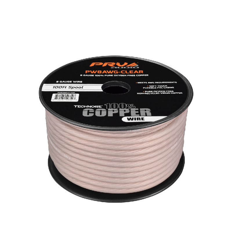 PRV Audio PW8AWG 8 Gauge Clear 100% Pure Oxygen Free Copper 100ft Roll Power Wire