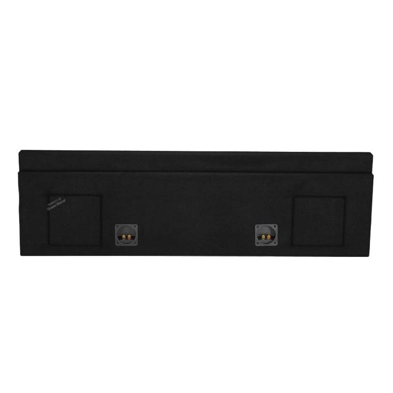 Features a 7 1/8" cutout for perfect subwoofer fitment and optimal sealing. Its total internal air volume of 1.27 ft³, divided into two chambers (0.64 ft³ per subwoofer), delivers controlled, punchy bass. Compact yet solid, it weighs 36 lbs with a shallow 5 1/2" mounting depth, fitting neatly behind the rear seat. The forward-firing design maximizes bass output and clarity, while vehicle-specific installation requires removal of air ducts, factory jack, and back panel carpet, compatible with 2007 old body style only.