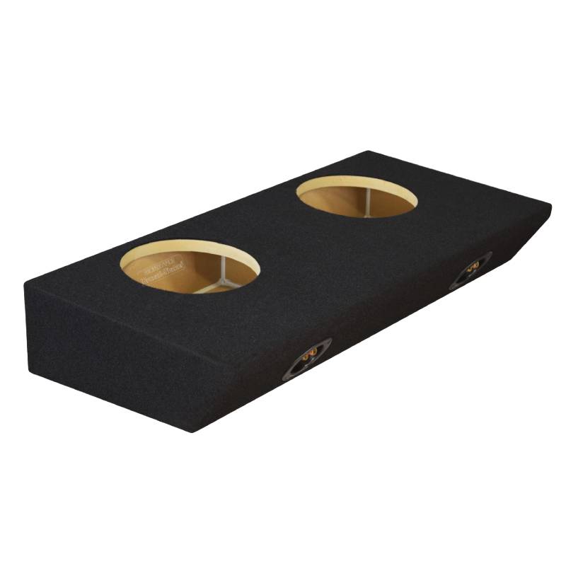 Constructed from 5/8" high-quality MDF wood for strength and durability, this enclosure features a long-lasting carpeted trunk liner finish for a clean, professional look. Sealed with premium Titebond silicone and glued with Titebond wood glue, it ensures a solid, airtight assembly. Equipped with one binding post terminal for secure wiring, the upward-firing design projects bass efficiently for full cabin fill. Designed to fit neatly under the rear seat, installation requires seat removal and is compatible only with shallow-mount subwoofers; wide baskets or large magnets may not fit.