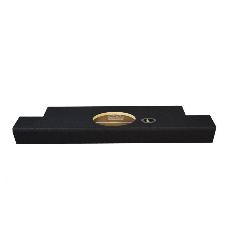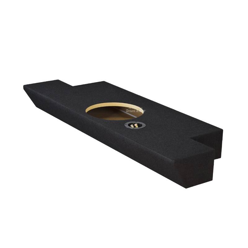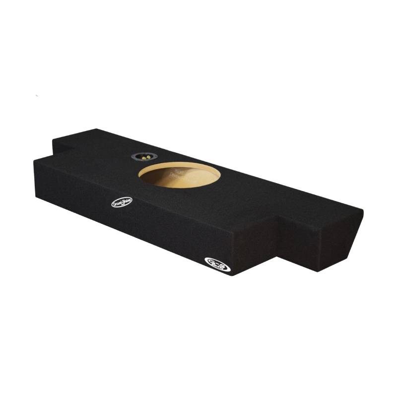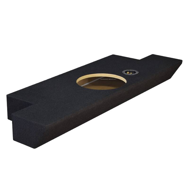 Constructed from 5/8" high-quality MDF wood for durable, long-lasting strength, this enclosure features a rugged carpeted trunk liner finish for a clean, professional look. It is sealed with premium Titebond silicone for an airtight design that delivers tight, controlled bass and assembled with Titebond wood glue for maximum structural integrity. A single binding post terminal provides reliable wiring, while the upward-firing design projects bass efficiently for optimal cabin fill. Designed to fit neatly under the rear seat, installation requires seat removal and is compatible with shallow-mount subwoofers only; wide baskets or large magnets may not fit.