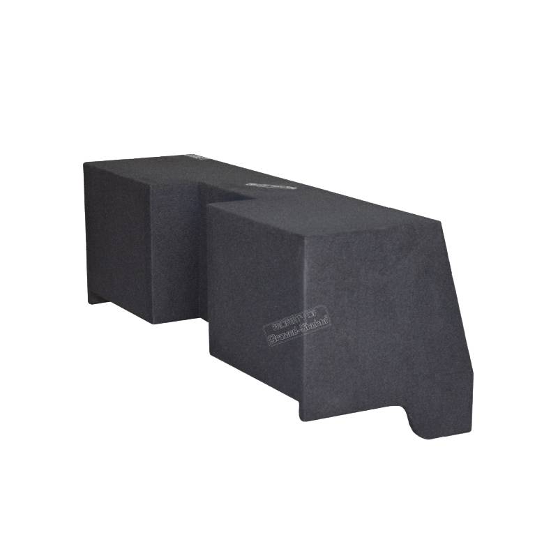 Constructed from 11/16" high-density MDF wood for strength and durability, this enclosure features a rugged carpeted trunk liner finish for a professional appearance. Sealed with high-quality silicone for airtight performance, it includes two spring-loaded terminals for secure and reliable wiring. Designed for rear-floor mounting, the down-firing design directs bass efficiently into the cabin. Installation requires removal of the tool box, and rear seating will not be usable after installation.