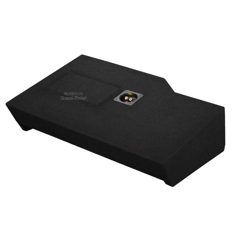 Crafted from 5/8" high-quality MDF wood for strong, durable performance, this enclosure features a rugged carpeted trunk liner finish for a clean, professional appearance. It is sealed with premium Titebond silicone to create an airtight chamber for tight, accurate bass and reinforced with high-quality Titebond wood glue for long-lasting structural integrity. Designed to fit under the rear seat behind the driver’s side, the down-firing configuration delivers deeper, more consistent low-frequency output, while a single binding post terminal provides secure and easy wiring..