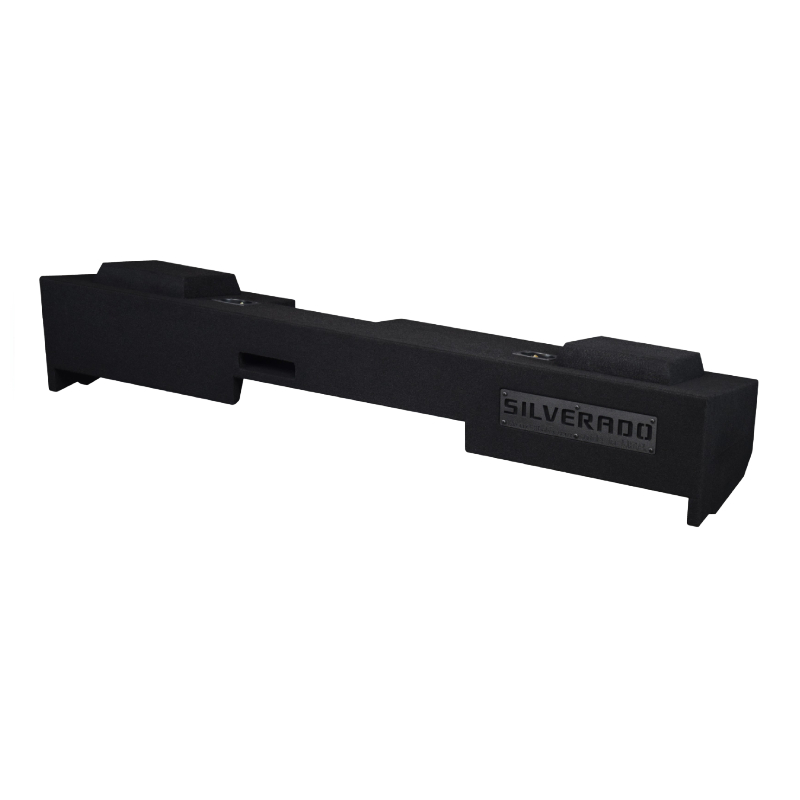 Equipped with dual binding-post terminals, this enclosure makes wiring your subwoofers fast, simple, and dependable. Weighing just 37 lbs, it’s lightweight for easy handling and installation while staying strong enough to handle high-powered bass with zero distortion. Designed specifically for newer body style trucks, it fits snugly under your seat for a clean, factory-style appearance and worry-free, high-performance audio.