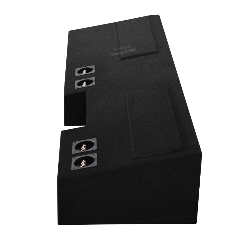 Experience precise, powerful bass with this forward-firing under-seat subwoofer enclosure, crafted from 5/8" high-quality MDF wood for durability and structural strength. Carpeted with rugged trunk-liner for a professional look, sealed with premium Titebond silicone, and reinforced with high-strength Titebond wood glue, it ensures tight, accurate bass. Equipped with 4 spring-loaded terminals and designed to fit neatly under the rear seat, this enclosure delivers a clean installation with forward-firing sound projection for optimal low-frequency performance.