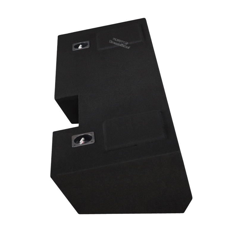 Built from 5/8" high-quality MDF wood for superior strength and reduced resonance, this enclosure features a rugged trunk-liner carpet finish for a clean, factory-style appearance. Sealed with premium Titebond silicone to ensure tight, accurate bass performance and reinforced with high-strength Titebond wood glue for long-lasting structural integrity, it delivers dependable low-frequency response. Equipped with dual binding post terminals for secure, clean wiring, the enclosure is designed to fit seamlessly under the rear seat. The down-firing configuration provides deep, controlled bass output while helping protect the subwoofer.