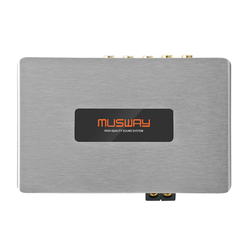 This system offers versatile power configurations, delivering 4 × 55/95 W RMS at 4/2Ω or bridged output of 2 × 55/95 W + 1 × 190 W RMS at 4Ω for subwoofer integration. Featuring advanced 8-channel DSP, it includes four configurable RCA outputs and allows up to six DSP setups to be saved and uploaded for precise audio customization. Inputs are equally flexible, with 6-channel high-level input (up to 24V) using EPS circuitry and 6-channel RCA input compatible with MPK-RCA6/MPK-RCA6-PP cable sets for seamless connectivity.