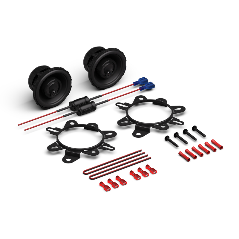 Co-molded basket terminals provide secure and reliable electrical connections for stable audio performance. The ICC+ internal concealed 6 dB/octave crossover network helps manage frequency distribution, while the included external 6 dB/octave “bass blocker” crossover adds extra protection and tuning control. The package comes with an adaptor plate, mounting hardware, and a cut-out template for easier installation. Sold as a pair, with compatible grilles available separately.