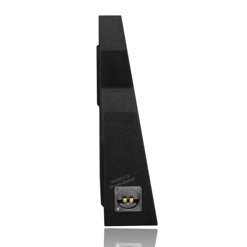 Measuring 14" in height and 51 1/4" in length, this enclosure is perfectly sized to fit behind your rear seat without compromising cabin space. The tapered design, with a top depth of 3 5/8" and bottom depth of 6 1/4", optimizes airflow for deeper, more powerful bass. It’s a perfect balance of form and function, delivering premium sound while looking great in your truck.