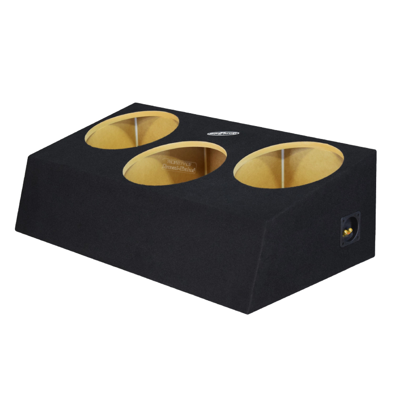 Built from thick 3/4" MDF, this enclosure provides strong rigidity and minimal vibration for clean, tight bass. Wrapped in durable trunk-liner carpet, it offers long-lasting protection with a professional, polished appearance. Airtight Titebond silicone sealing maintains precise internal pressure for accurate bass response, while premium wood glue assembly ensures maximum structural strength and long-term reliability. Featuring a single binding post terminal for secure wiring and an upward-firing design for full, immersive sound, this ready-to-install enclosure fits perfectly with no modifications required.