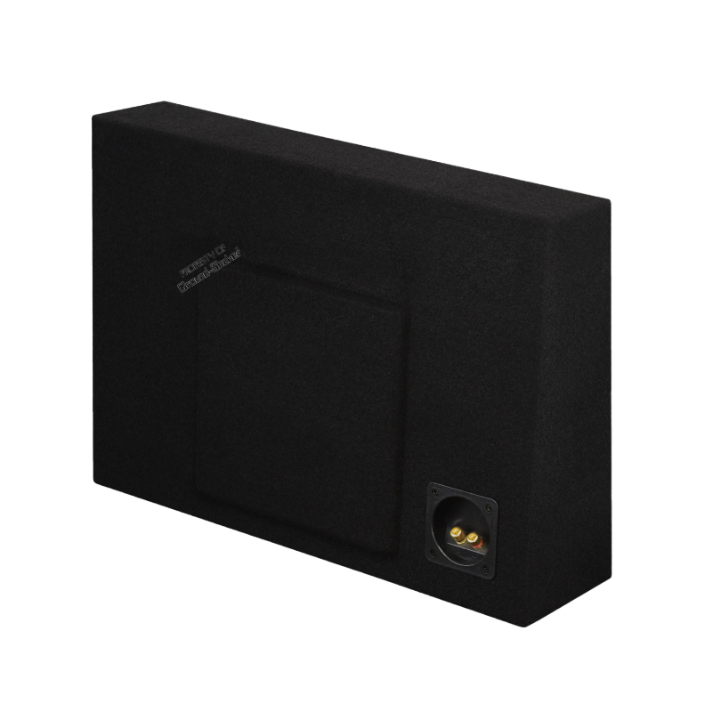 Built from 5/8" high-quality MDF, this enclosure delivers a rigid, vibration-resistant structure for clean, deep bass. Wrapped in durable trunk-liner carpet, it provides long-lasting protection with a polished, professional look. The airtight Titebond silicone seal maintains precise internal air pressure for accurate bass response, while premium wood glue assembly ensures maximum structural strength and durability. Equipped with a single binding post terminal for secure wiring, it fits neatly behind the rear seat and features a forward-firing design to project bass for full, impactful sound. Installation may require removal of the plastic tray and rear wall carpet for proper fitment.