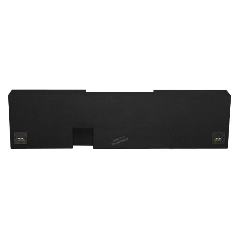 Measuring 13 3/4" in height and 53 1/4" in length, this enclosure fits perfectly behind your seat without taking up extra space. Its tapered design, with a top depth of 5" and bottom depth of 9", ensures optimal sound projection and a sleek, stylish look. Enjoy big, booming bass in a compact, space-saving package built for any vehicle.