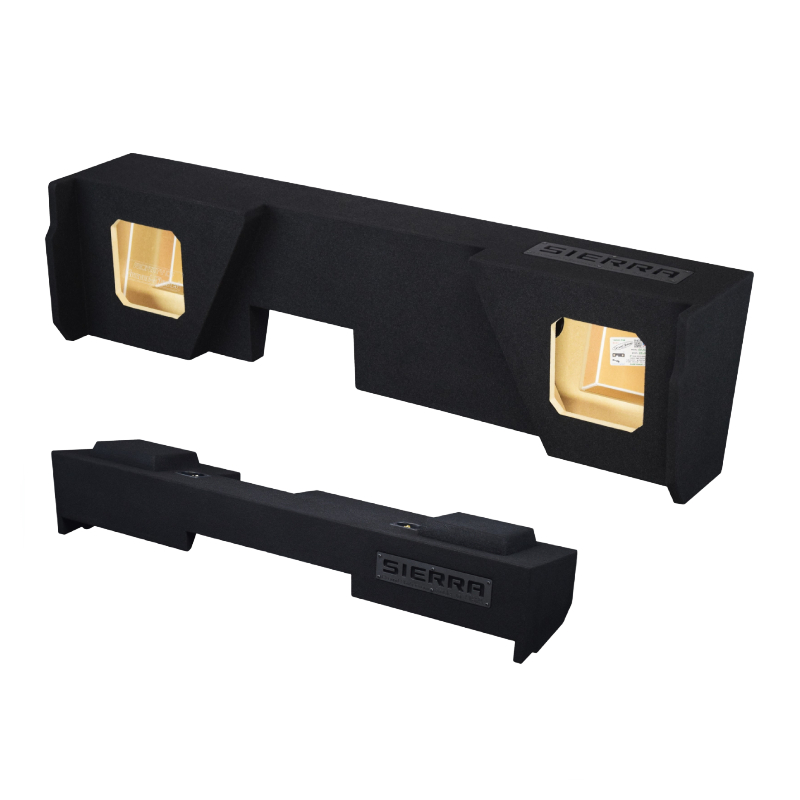 Constructed from 5/8" high-quality MDF, this enclosure minimizes resonance for clean, tight bass. Its durable trunk-liner carpet finish protects the box while giving a sleek, factory-style appearance. Sealed with premium Titebond silicone, it maintains precise internal air pressure for accurate low-frequency response, and high-strength Titebond wood glue ensures long-lasting structural integrity. Equipped with 2 binding post terminals, it offers secure and reliable connections for your subwoofers. Designed for under-seat installation behind the driver’s side rear seat, the down-firing design delivers deep, impactful bass directly to the cabin floor. Truck Compatibility: Not suitable for 2007 Classic models.